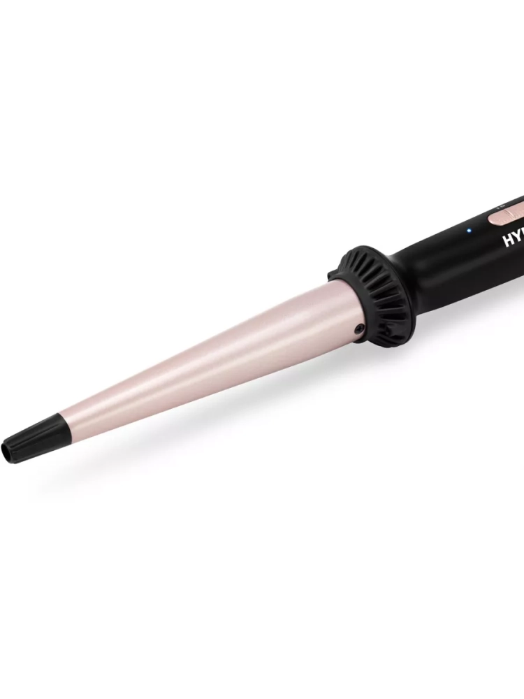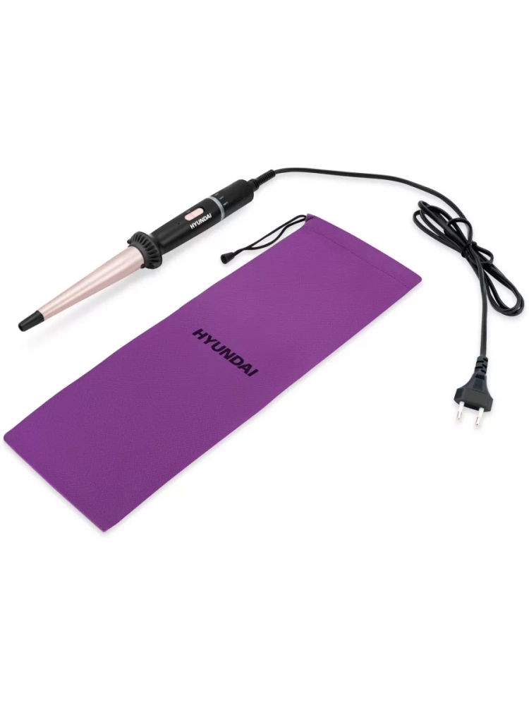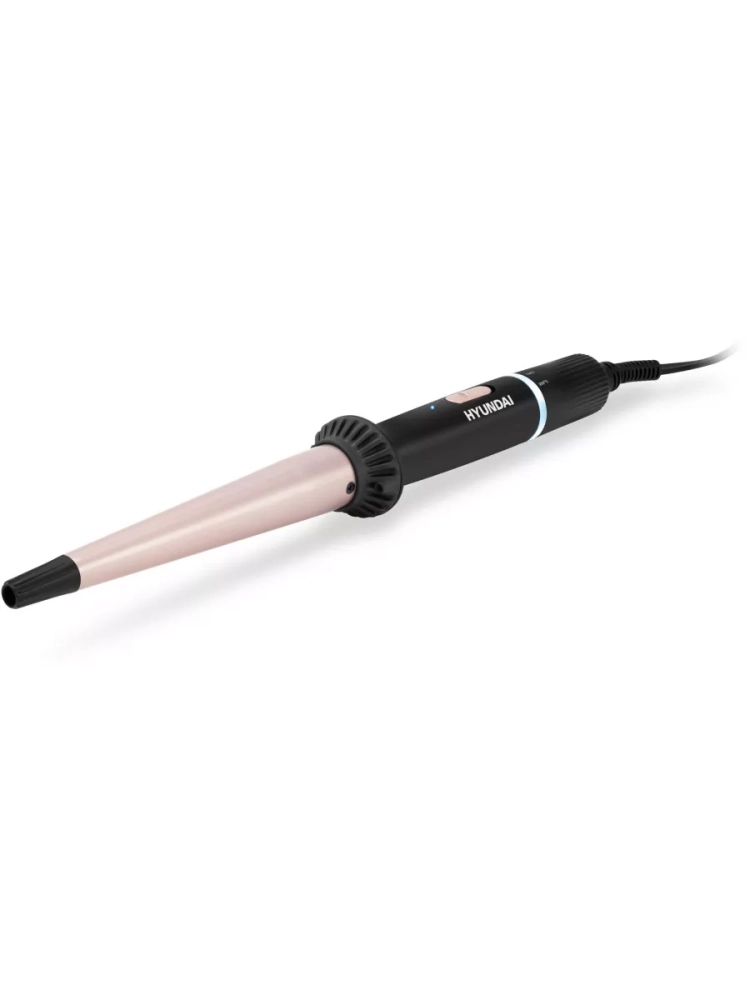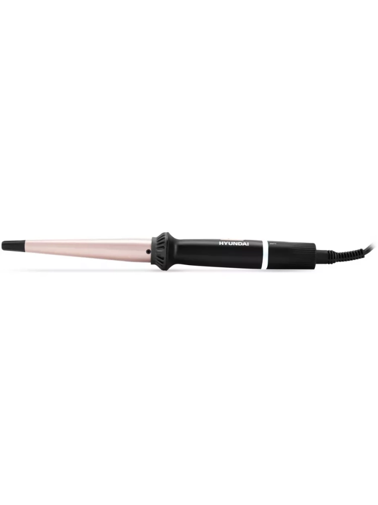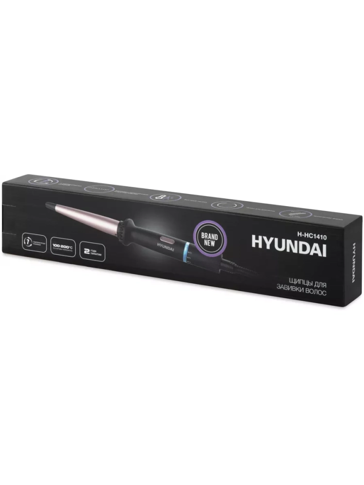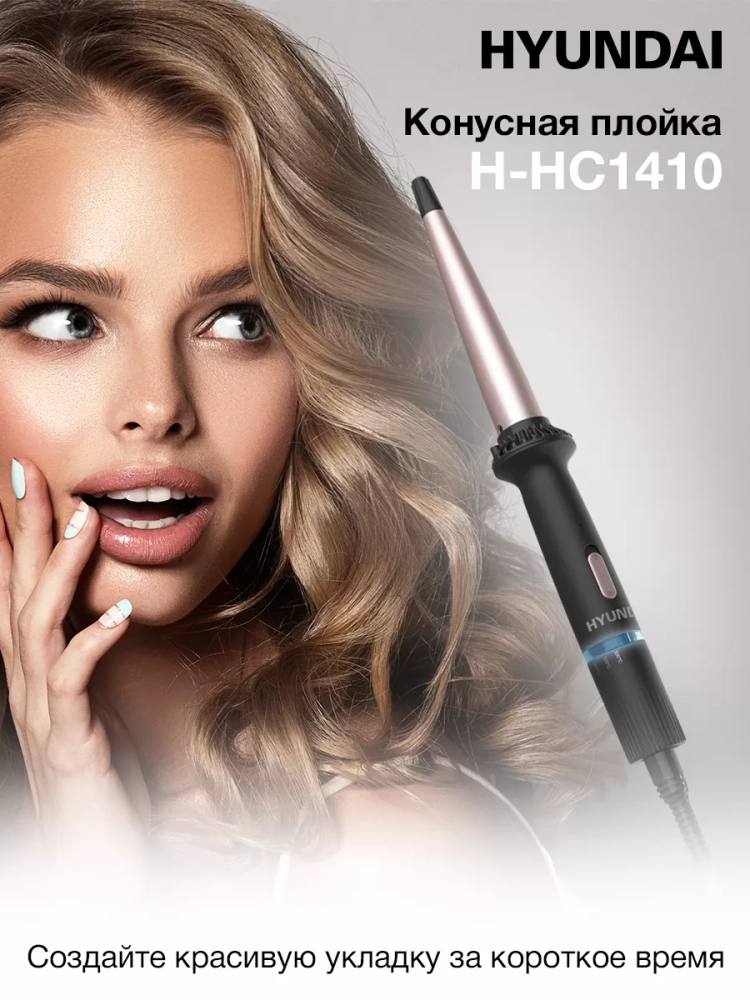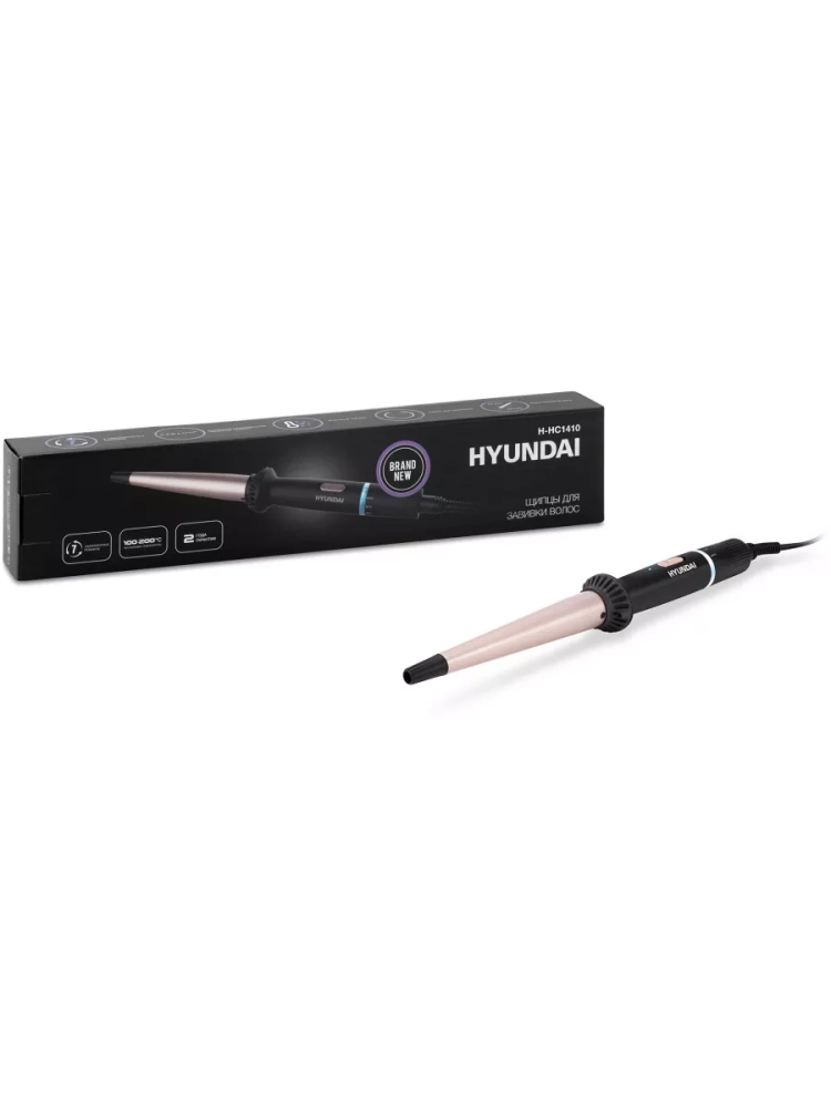 Щипцы для завивки Hyundai H-HC1410 40Вт черный макс.темп.:200С покрытие:керамико-турмалиновое ,для локонов, коническая насадка, индикатор включения/выключения, петля для подвешивания, термоизолированный наконечник, шарнирное крепление шнура, чехол.