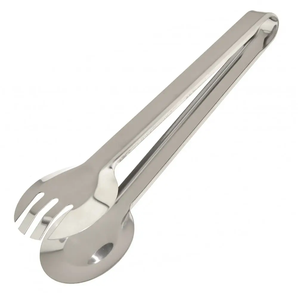 Для приготовления и раскладывания пищи весьма кстати будут универсальные щипцы. Инструмент специально разработан для удобства захвата разной пищи – овощей, мяса, порезанной зелени и т.д. Одна сторона выполнена в виде ложки, другая оснащена прорезями. Приспособление универсально, выполнено из стали с хромированным покрытием, следовательно, может использоваться с горячей и холодной пищей. Длина 23,5 см. После применения рекомендуется мыть мягкой щеткой с использованием жидких моющих средств.