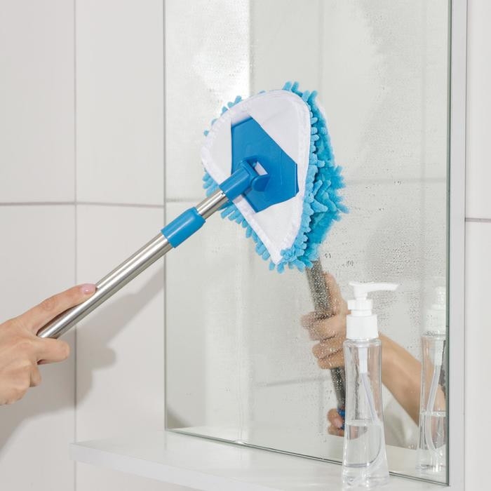 Щётка для окон Доляна, телескопическая ручка 54(86) см, поворотная головка, насадка из микрофибры 14×16 см, цвет синий