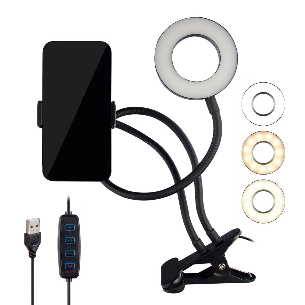 Селфи кольцо 8.5см с держателем 360° черное (40 шт./кор)