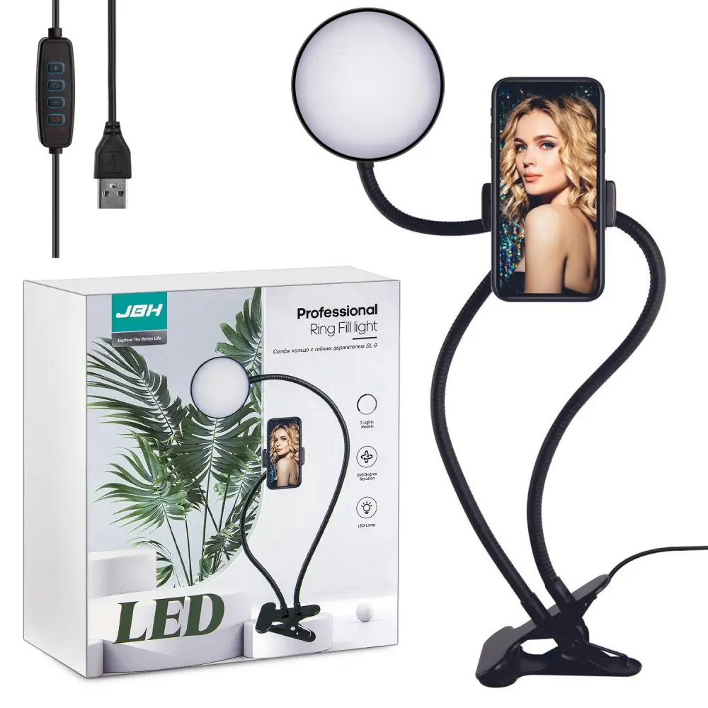 Селфи кольцо с гибким держателем SL-9 черное JBH (30шт/кор)