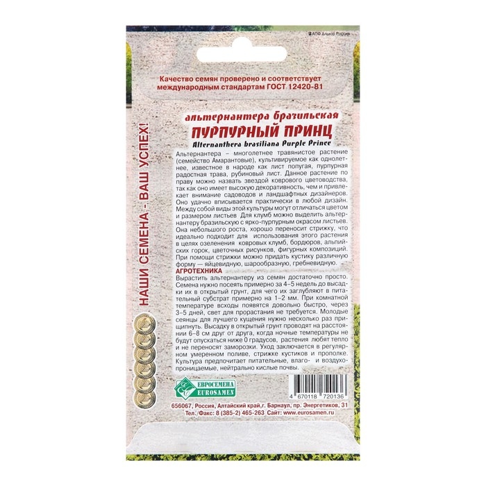 Семена цветов Альтернантера бразильская "Пурпурный Принц", 3 шт