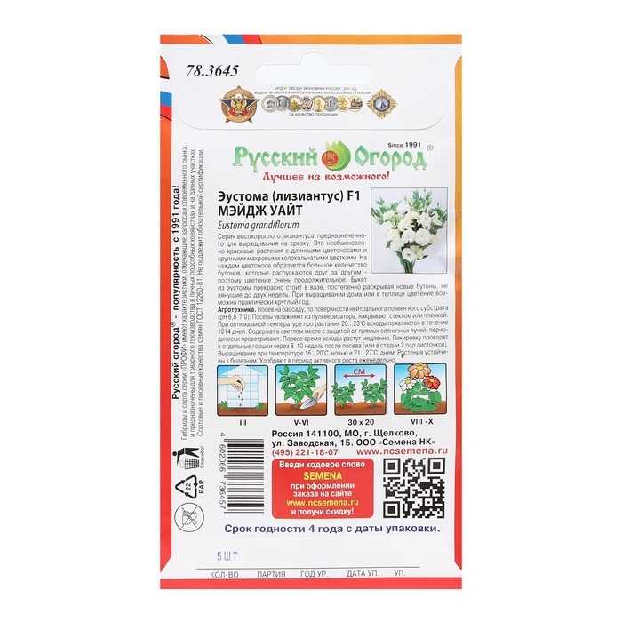Семена цветов Эустома "Эхо" Белая F1, О, драже 10 шт