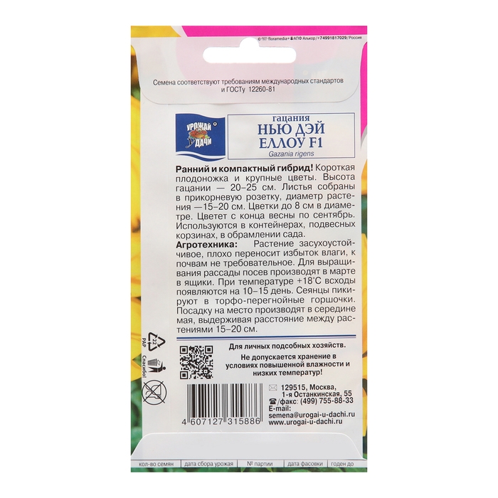 Семена цветов Гацания "Сияние солнца", Сем. Алт, ц/п, 0,1 г