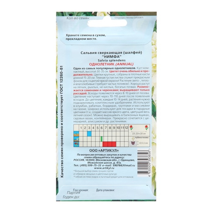 Семена цветов Сальвия Скарлет, О, 0,1г