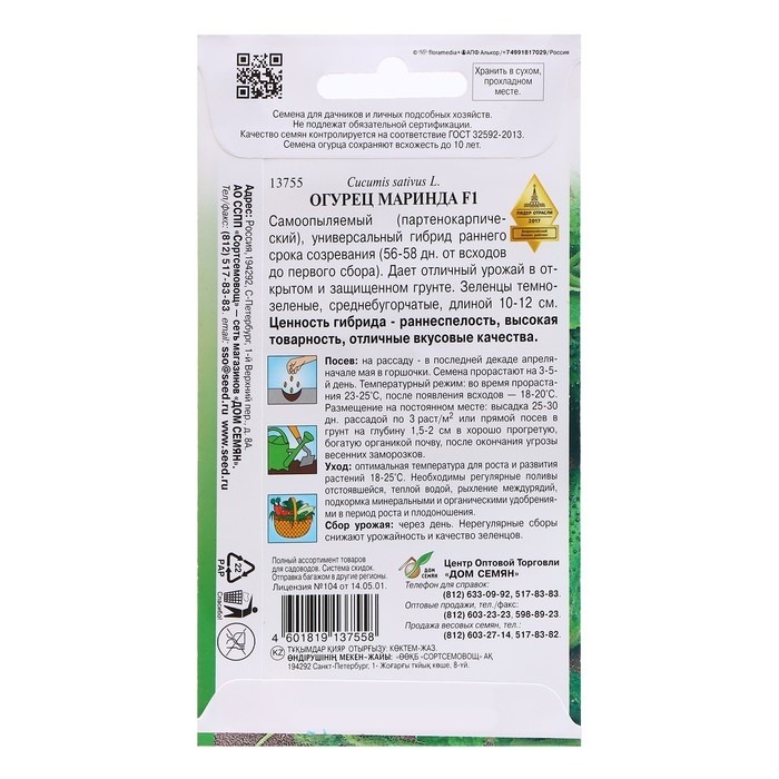 Семена огурца "Великолепная пятерка", F1,набор 5 шт