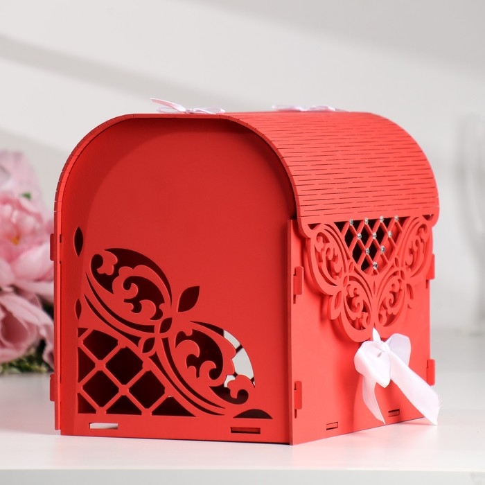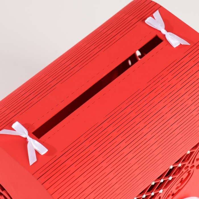 Семейный банк "Ажурный", со стразами, красно-белый, 23,5х17х20 см