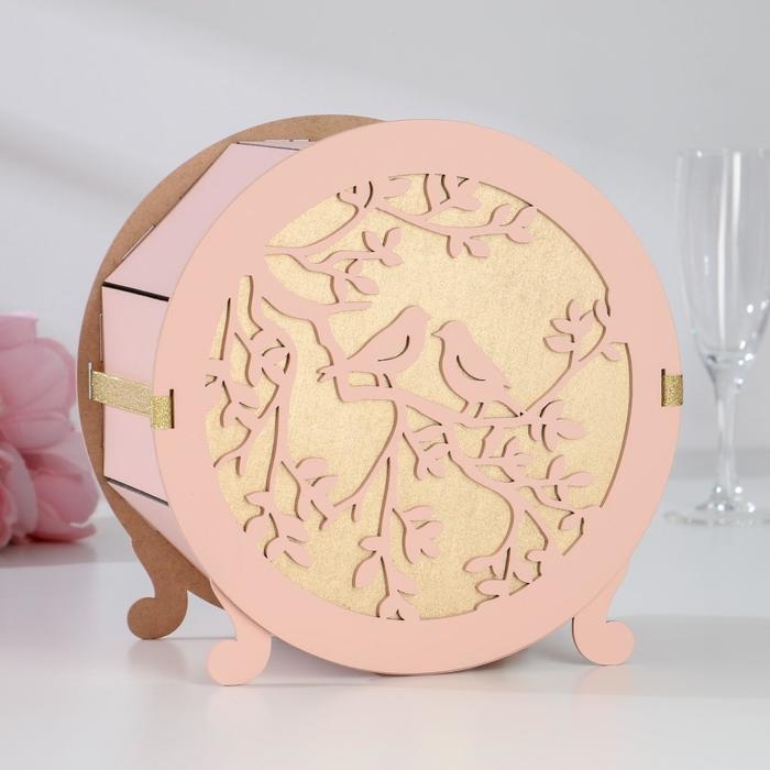 Семейный банк "Птицы", пудровый-золото, 21,7х13х21,7 см