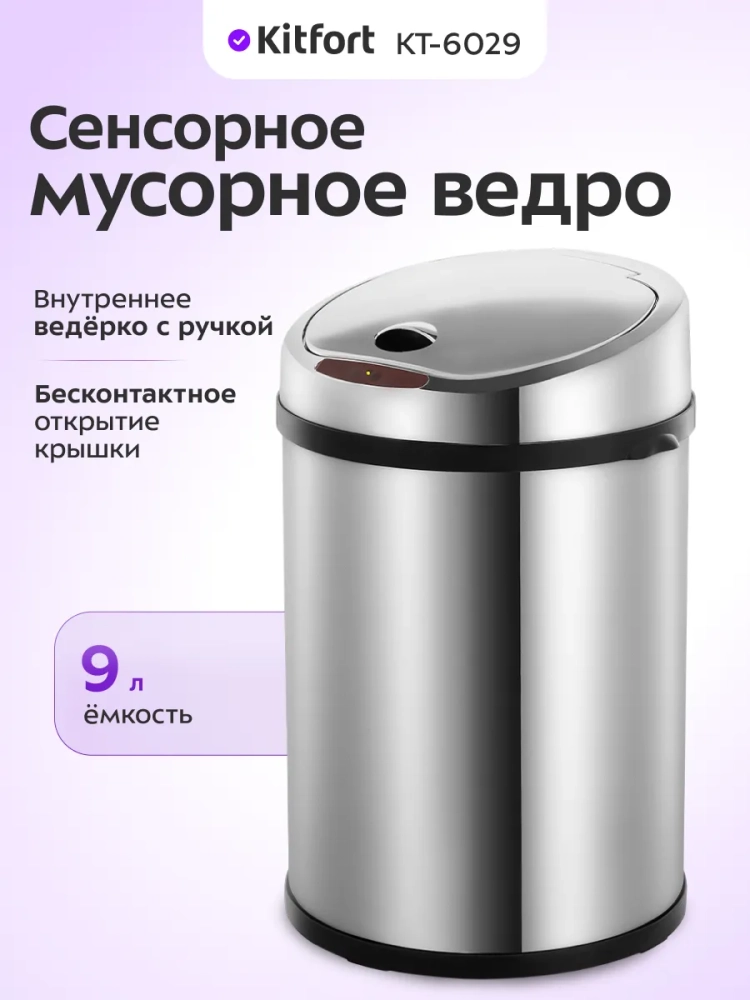 Сенсорное мусорное ведро Kitfort КТ-6029 — это компактная корзина для мусора с функцией бесконтактного открытия крышки. Его удобно поставить в кабинет, в комнату или в санузел, чтобы выбрасывать мелкий мусор.