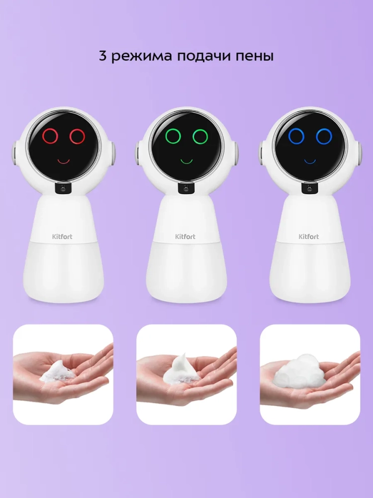 Сенсорный диспенсер для мыла-пены Kitfort КТ-6380 — устройство для порционной выдачи жидкого мыла, жидких моющих и косметических средств в виде пены.