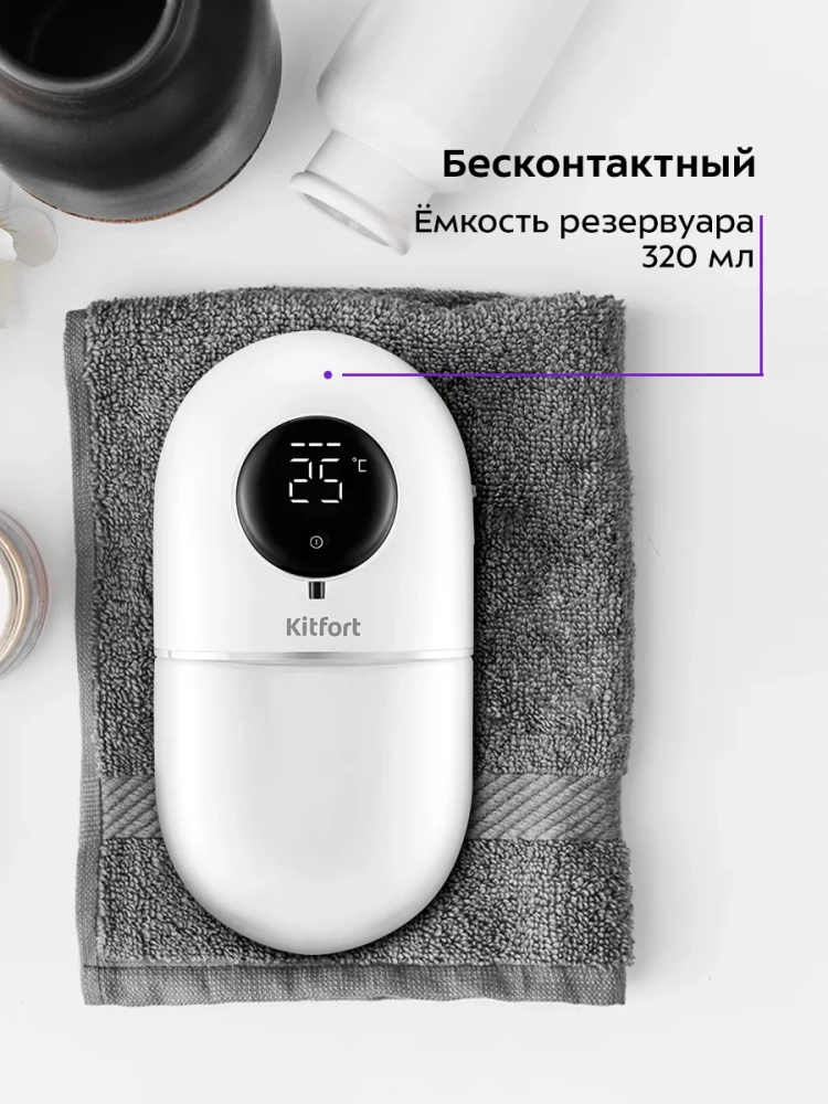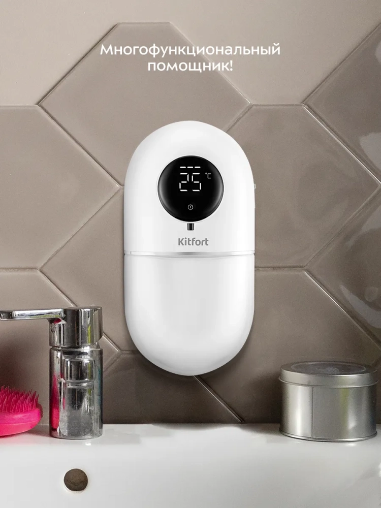 Сенсорный диспенсер для мыла-пены Kitfort КТ-6381 — устройство для порционной выдачи жидкого мыла, жидких моющих и косметических средств в виде пены.