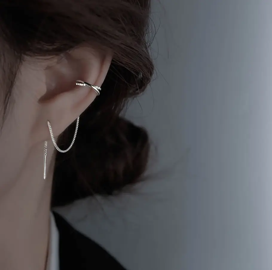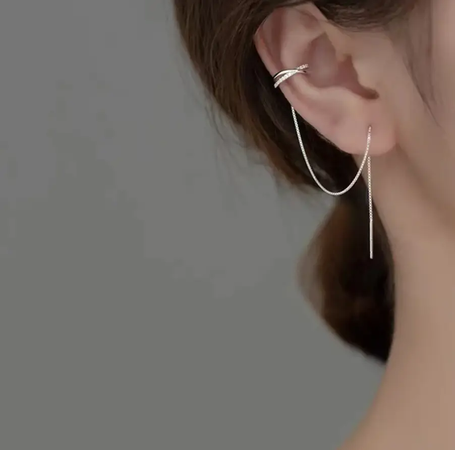 Серьга-кафф с цепочкой серебряная 1 шт