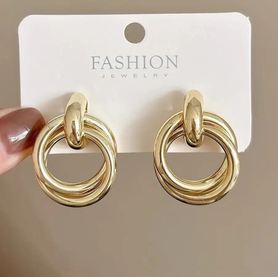 Серьги двойные кольца золотые