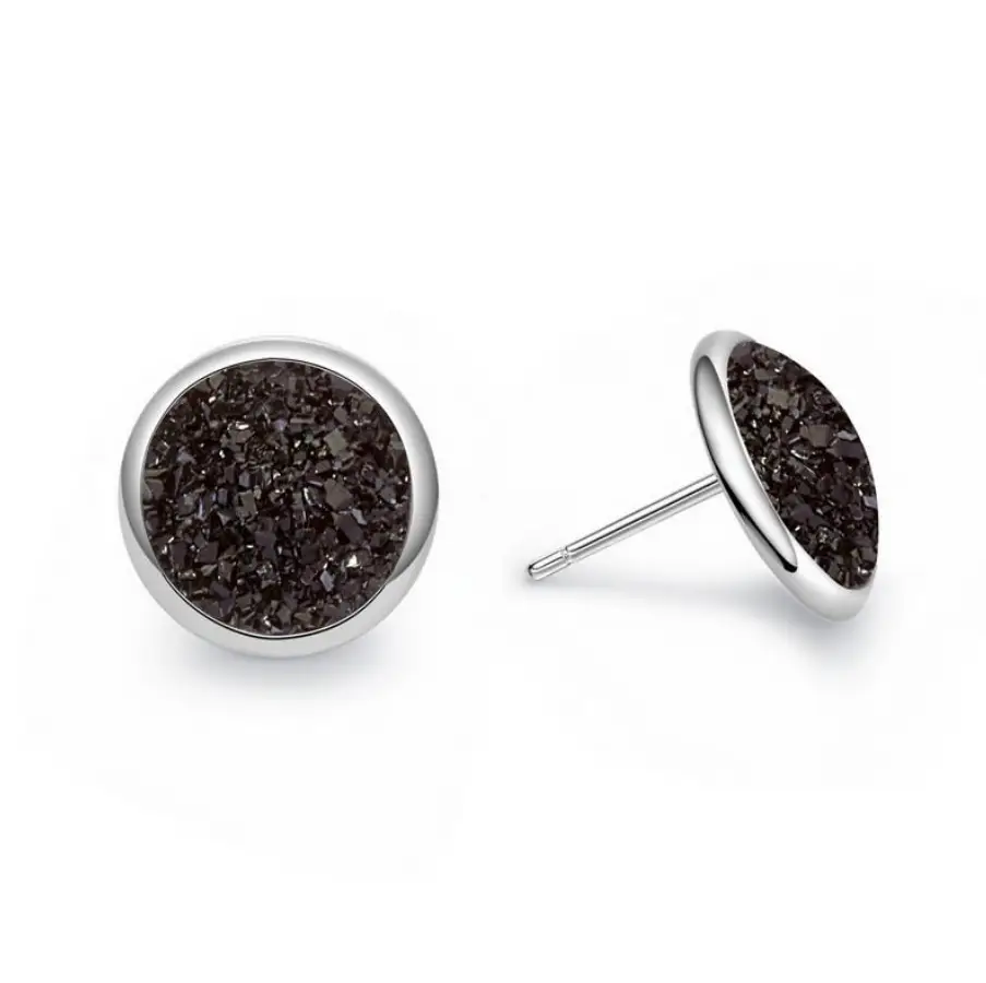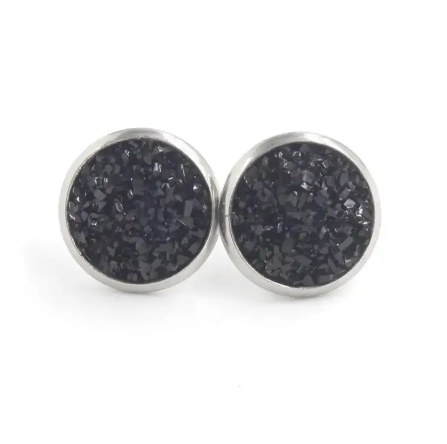 Серьги гвоздики Черные кристаллы серебристые