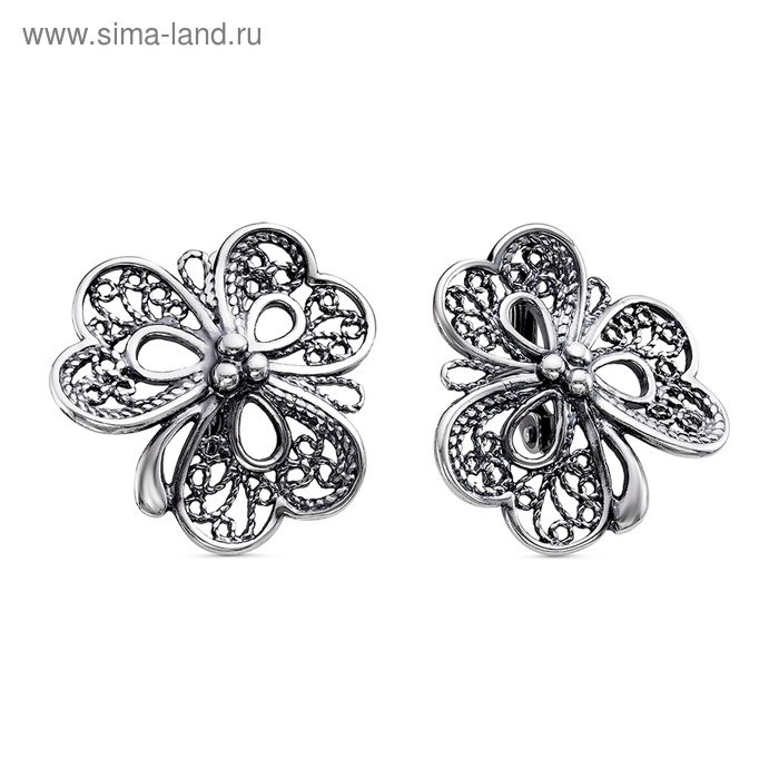 Серьги «Клевер», посеребрение с оксидированием