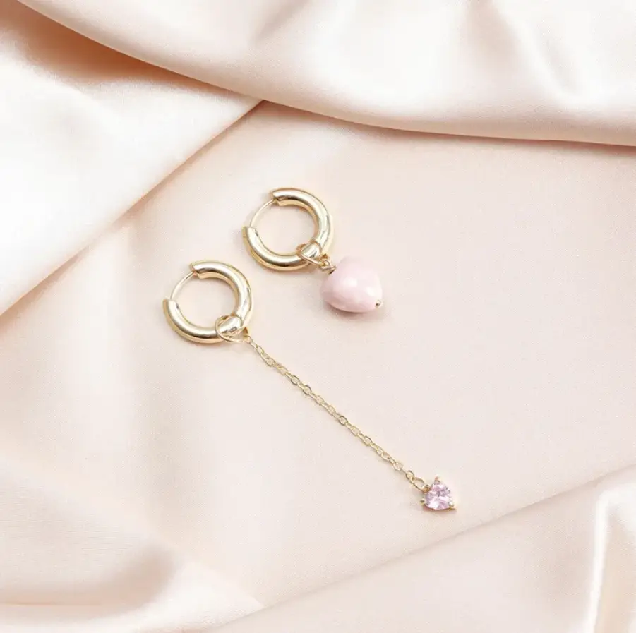 Серьги конго трансформеры розовые с подвесом золотистые