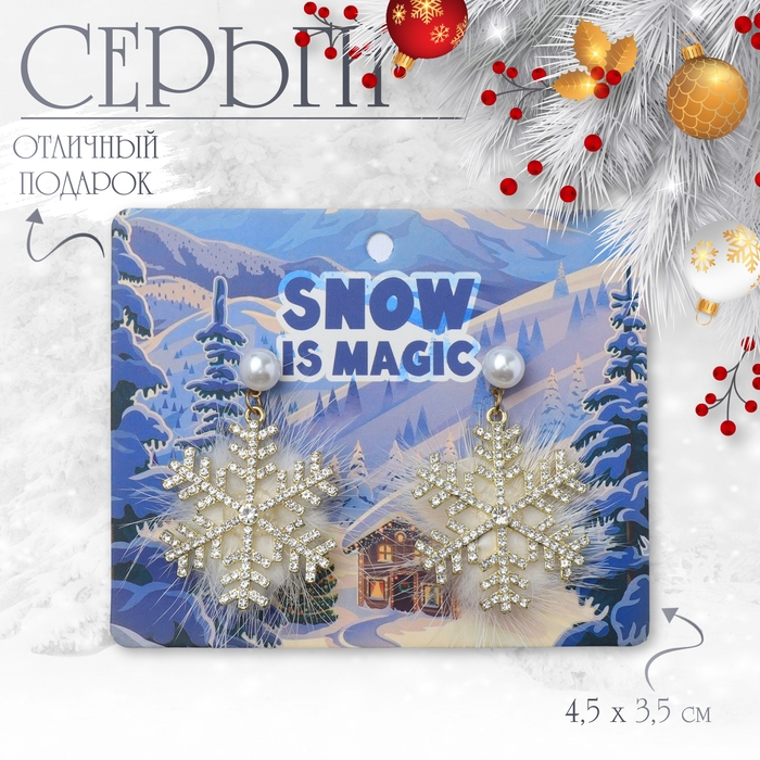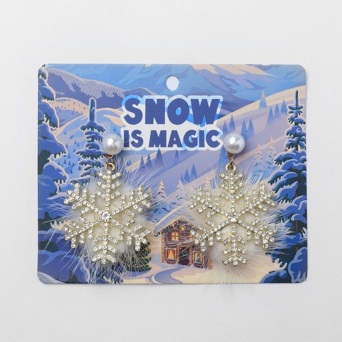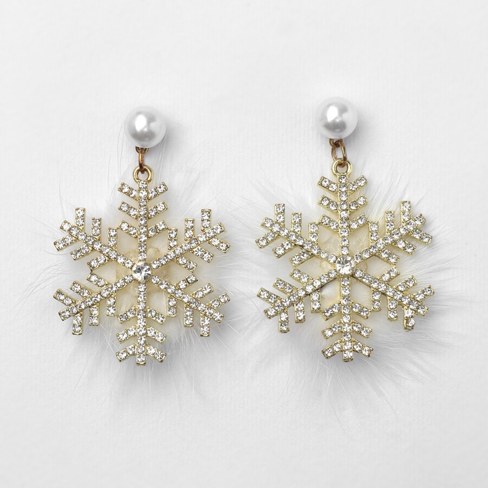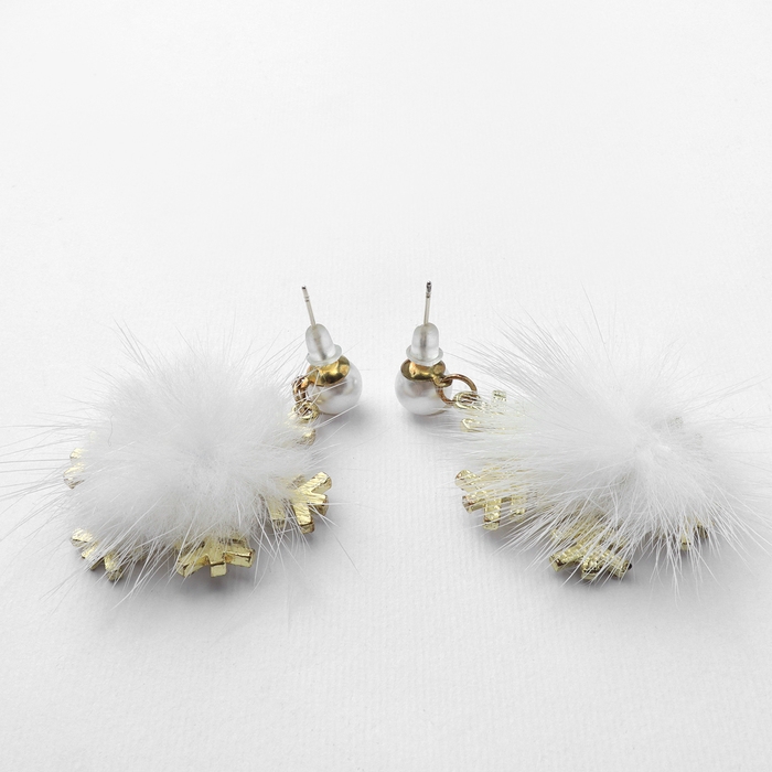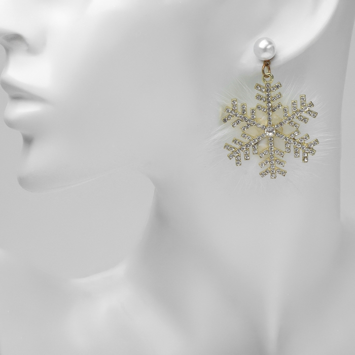 Серьги «Новогодние» пушистая снежинка, цвет белый в золоте