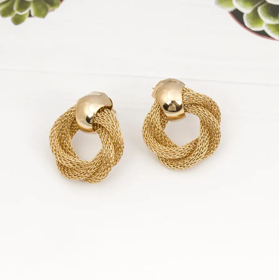 Серьги с сетчатым переплетением колечек золотистые