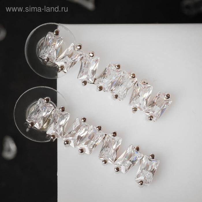 Серьги со стразами "Искорки" льдинки, цвет белый в серебре