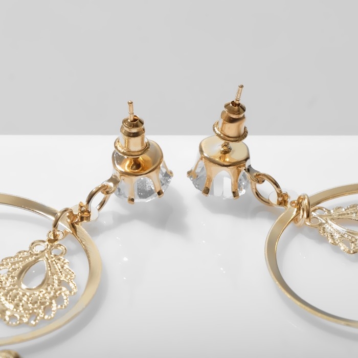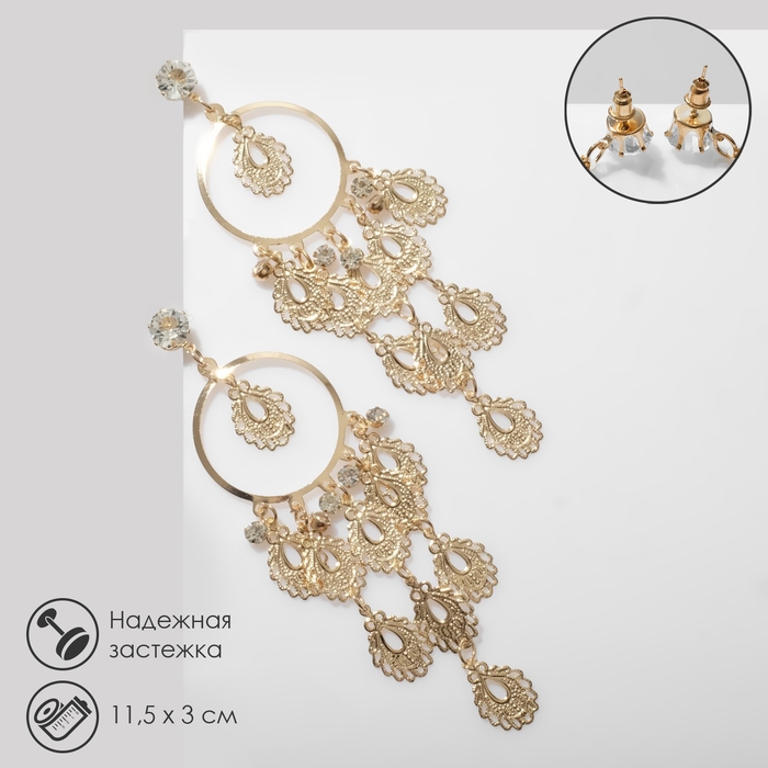 Серьги висячие «Капли» ажурные на кольцах, цвет белый в золоте, 11,5 см