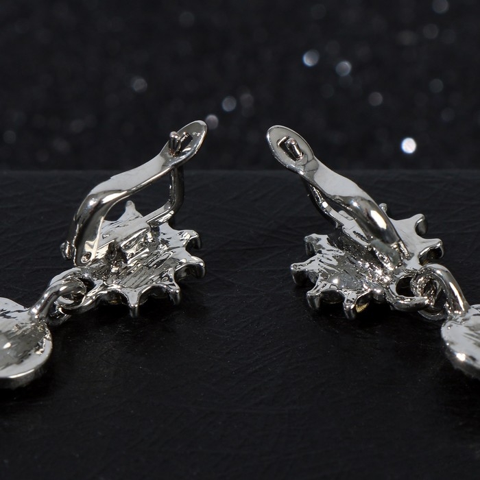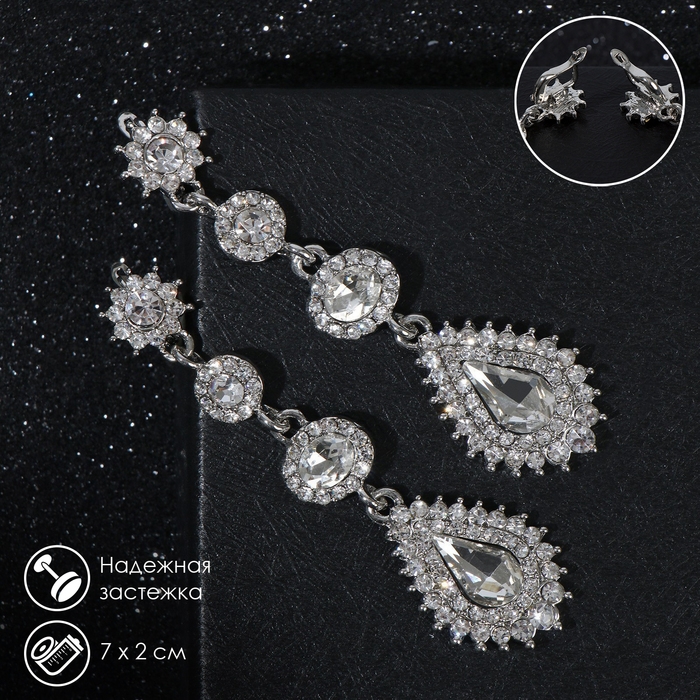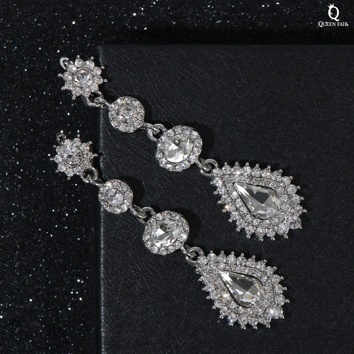 Серьги висячие со стразами «Вечерние» мадам, цвет белый в серебре, 7 см