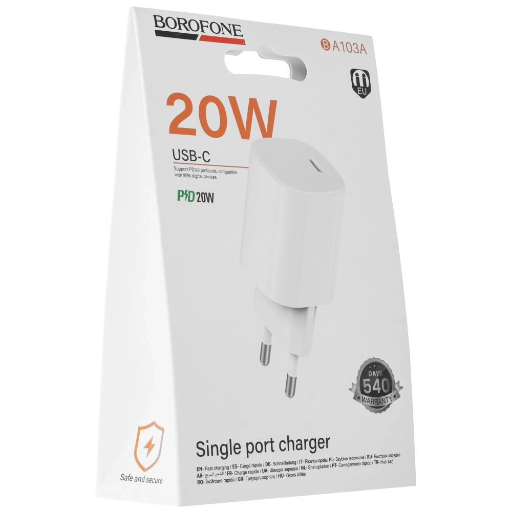 Сетевое зарядное устройство Borofone BA103A Pudding защищено от короткого замыкания, перегрузки и перегрева. В случае сильного нагрева, резких скачков и повышения допустимой силы тока устройство автоматически отключается.