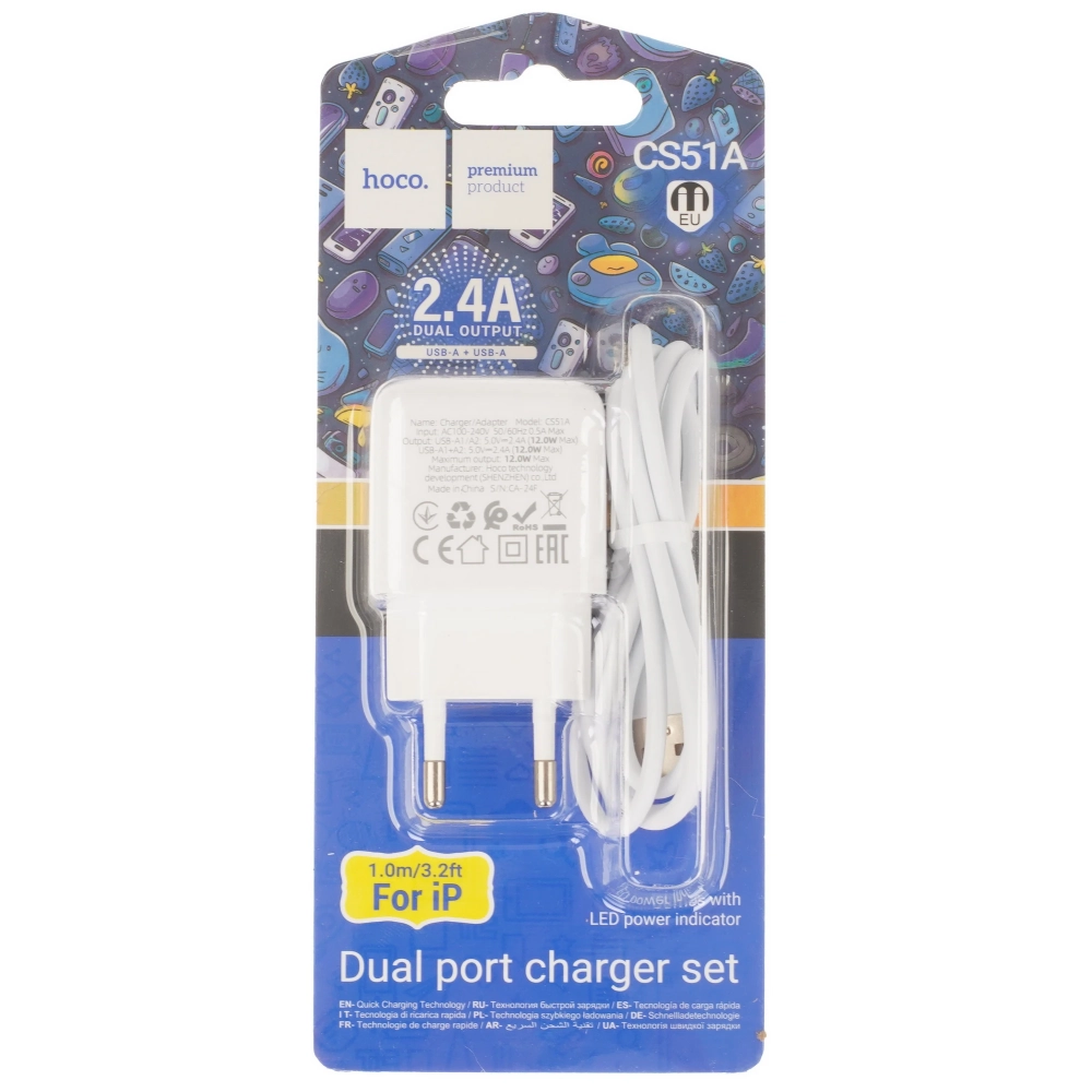Сетевое зарядное устройство CS51A с кабелем lightning