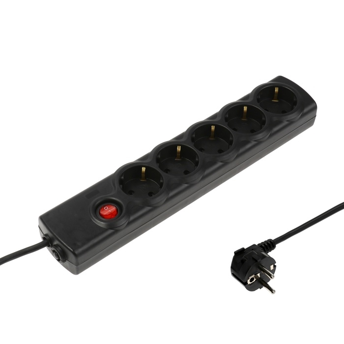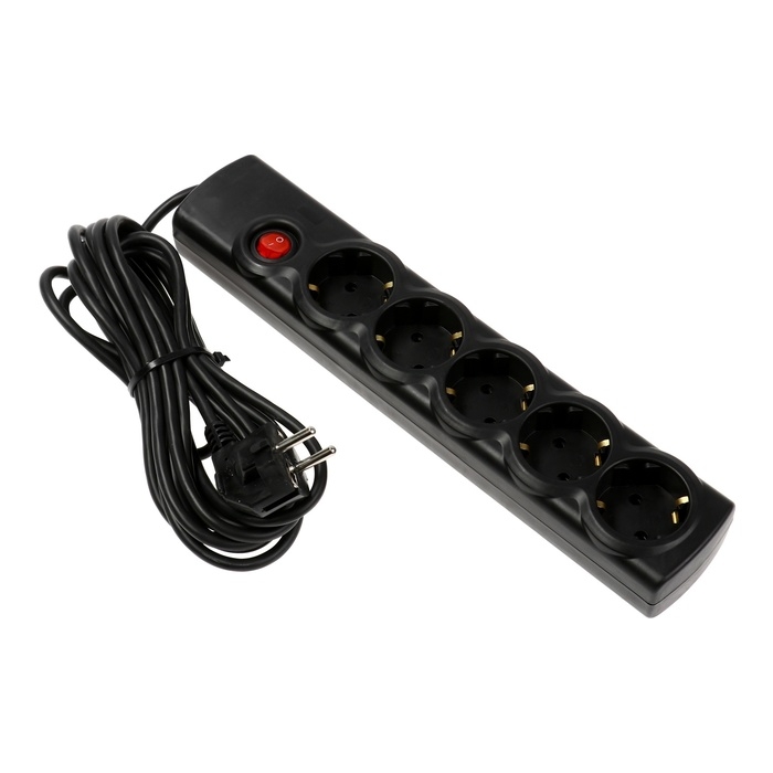 Сетевой фильтр Luazon Lighting, 5 розеток, 5 м, 3500 Вт, 3х1 мм2, 16 A, 220 В, c предохранителем, черный