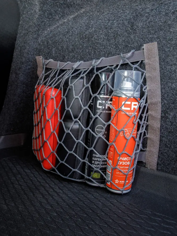 С этой сеткой ваш багажник становится более организованным и упорядоченным местом, что способствует безопасной перевозке мелких грузов и предотвращает их перемещение во время движения.