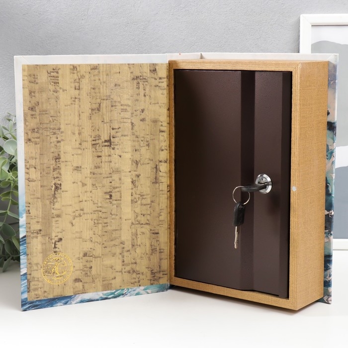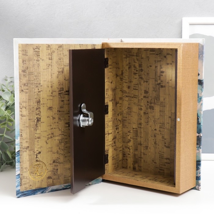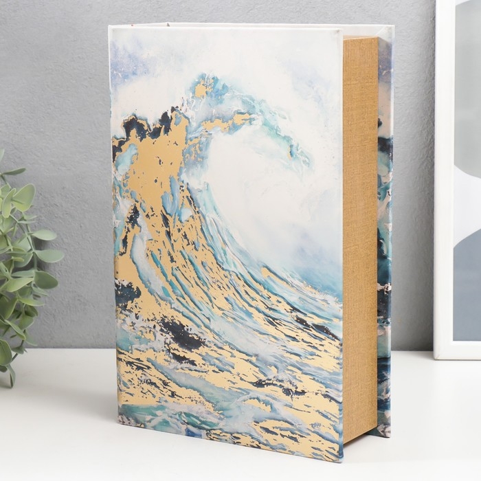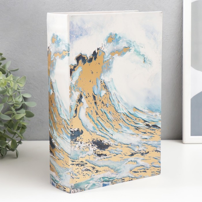 Сейф-книга дерево кожзам "Волна. Акварель. Золото" 27х18х7 см