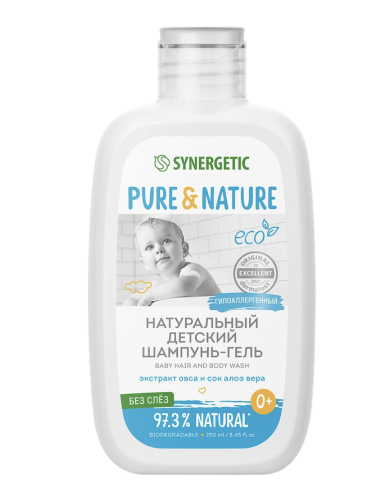 Шампунь-гель для волос и тела детский SYNERGETIC без слез 0+, 250мл