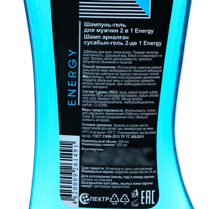 Шампунь-гель для мужчин 2в1 Energy, 500 мл