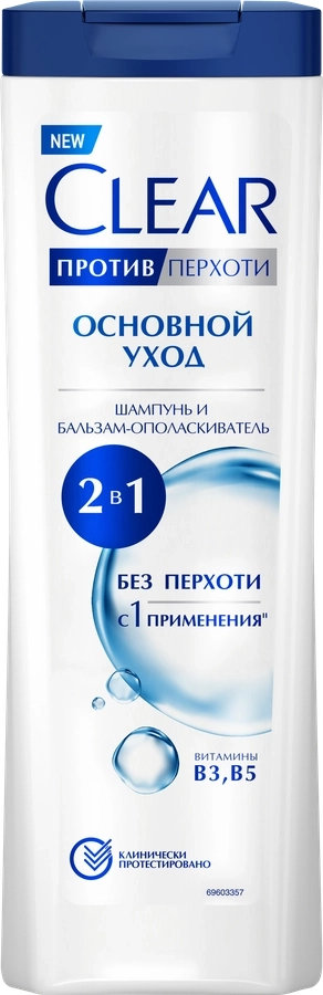 Шампунь и бальзам-ополаскиватель для волос CLEAR Основной уход 2в1 против перхоти – это многофункциональное средство для ухода за волосами для женщин и мужчин. Шампунь воздействует на основную причину возникновения перхоти с первого применения, борется с жирностью волос и зудом. Средство 2в1 глубоко питает и увлажняет волосы, бережно и эффективно очищает кожу головы. Волосы становятся более блестящими и сильными, а перхоть пропадает без следа. Формула шампуня с витаминами увлажняет кожу головы и волосы, препятствуя потере влаги. Обладает приятным и ненавязчивым ароматом, который подойдет как для женщин, так и для мужчин. Подходит для ежедневного применения.