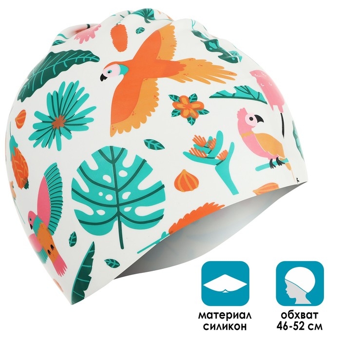 Шапочка для плавания детская ONLITOP «Фламинго с птицами», силиконовая, обхват 46-52 см