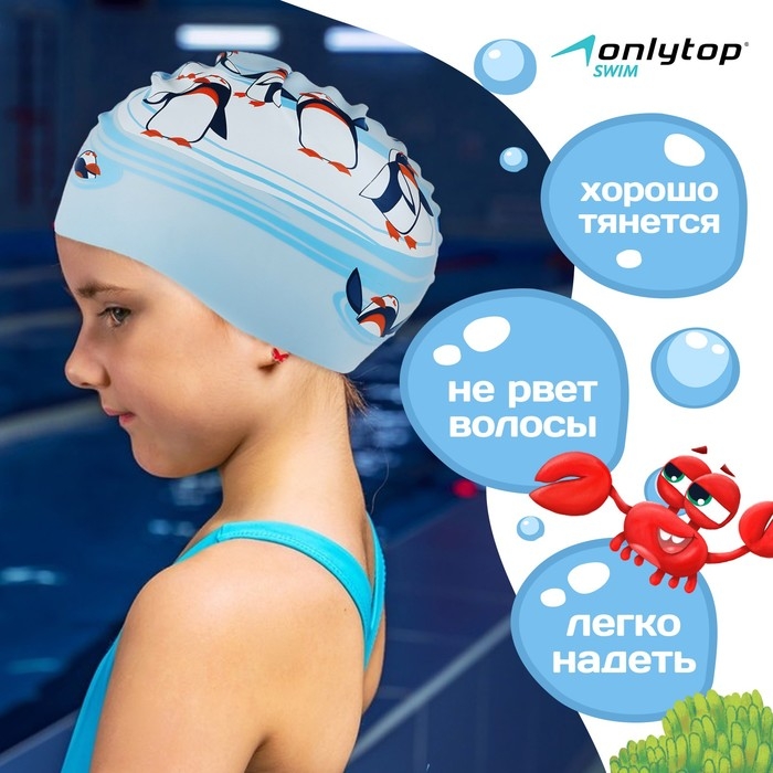 Шапочка для плавания детская ONLITOP «Пингвины», силиконовая, обхват 46-52 см