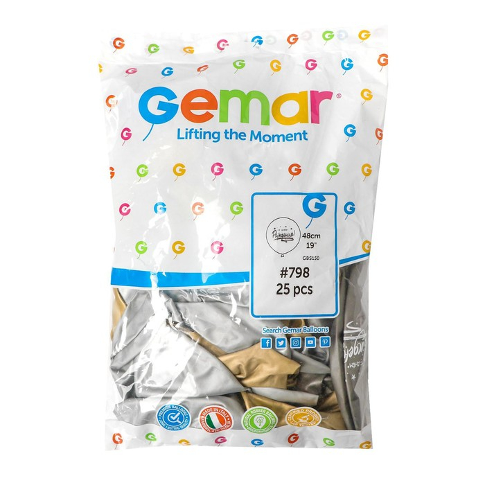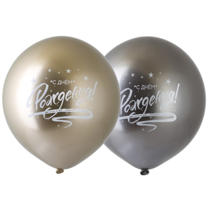 Шар латексный 18" «С днём рождения» хром, набор 25 шт.