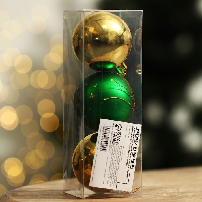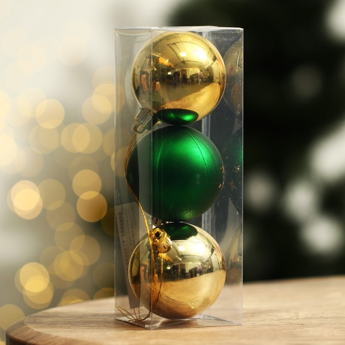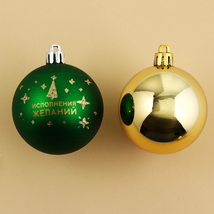 Шары ёлочные новогодние «Исполнения желаний!», на Новый год, пластик, d=6, 3 шт., цвет зелёный и золотой