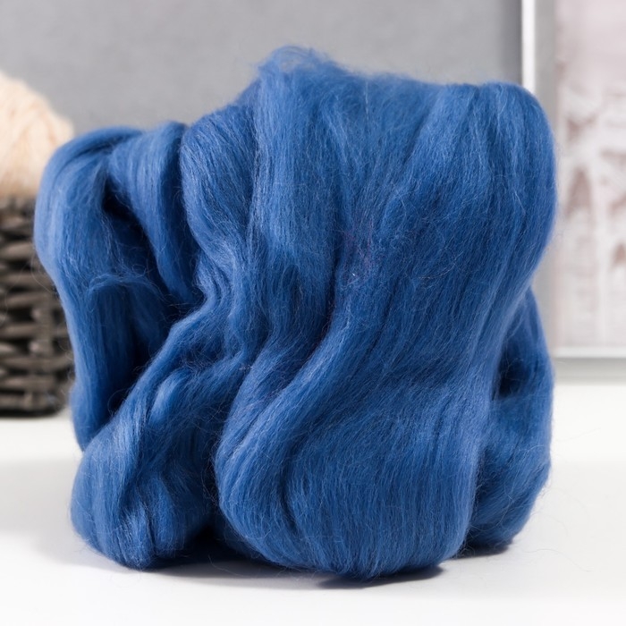Шерсть для валяния 100% полутонкая шерсть 50 гр (022, джинса) МИКС