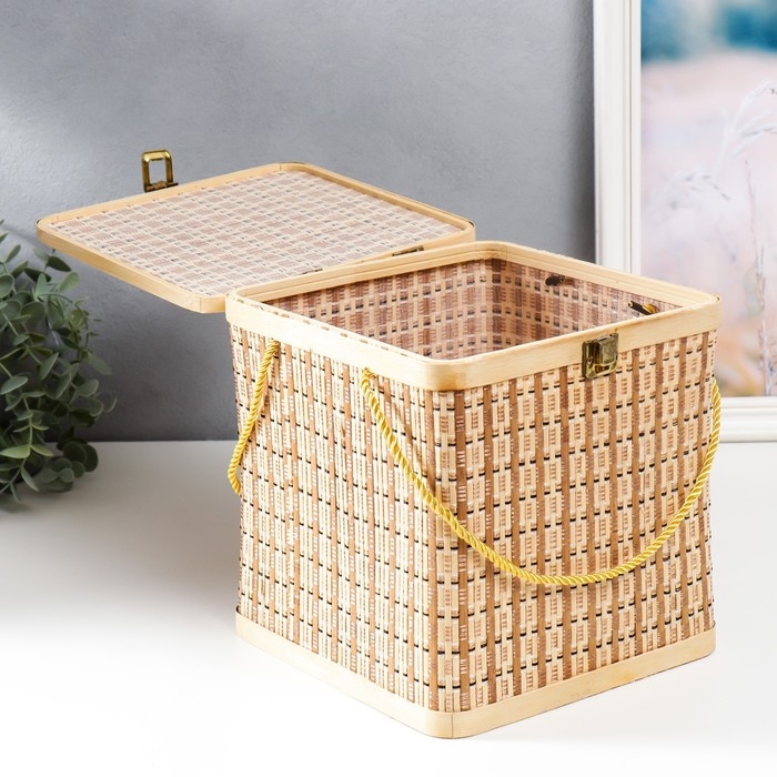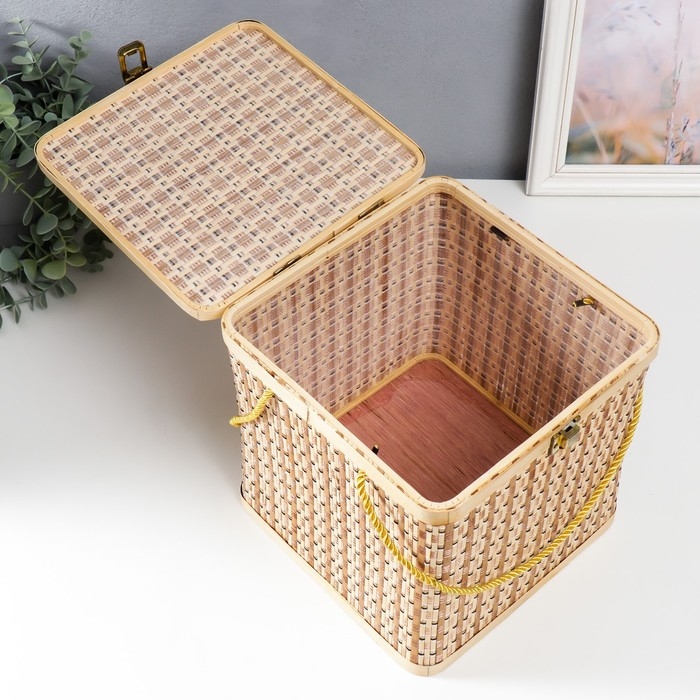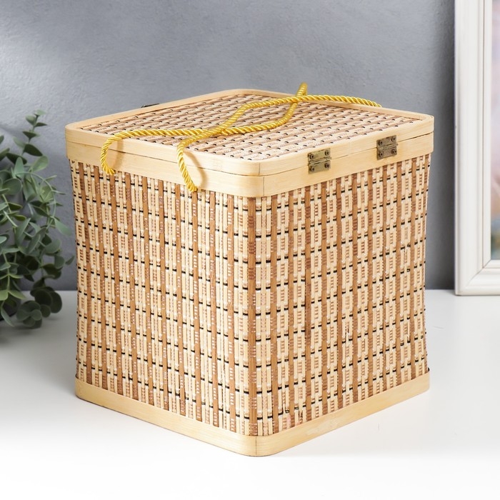 Шкатулка бамбук "Плетёнка" со шнуром 22х22х22 см