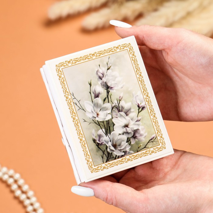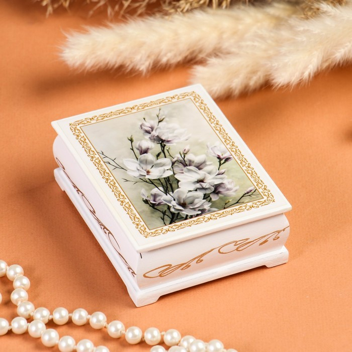 Шкатулка «Цветение», белая, 8×10,5 см, лаковая миниатюра