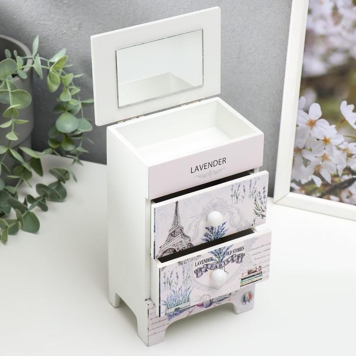 Шкатулка дерево комод 2 ящика "Эйфелева башня, лаванда" 18,5х11,5х7,5 см