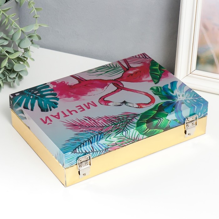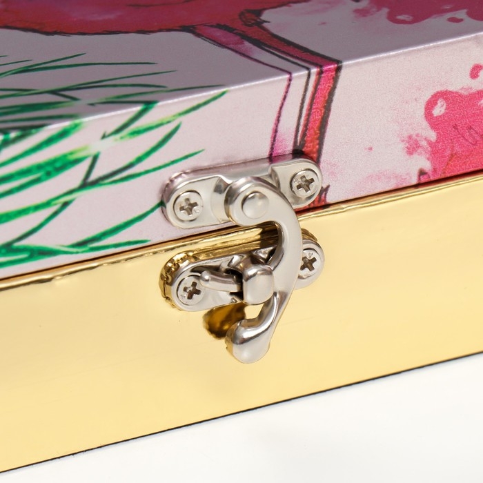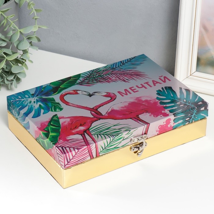 Шкатулка дерево "Розовые фламинго. Мечтай" кожзам глянец 5,5х24х17 см