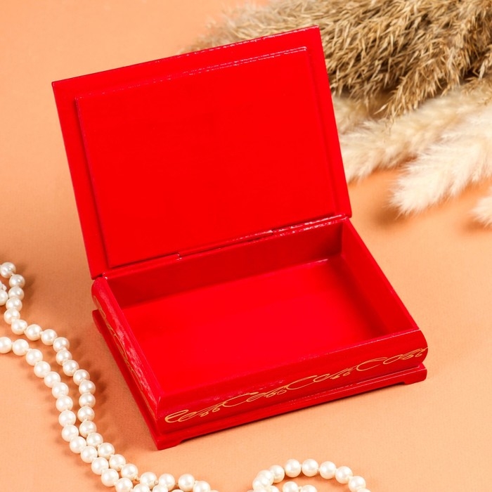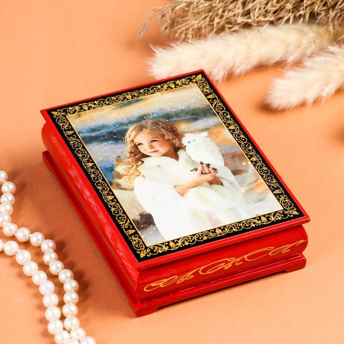 Шкатулка «Девочка с совой», красная, 10×14 см, лаковая миниатюра