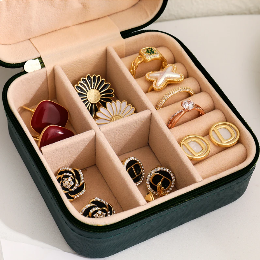 Удобные маленькие ячейки позволяют аккуратно разместить заколки и другие женские мелочи, создавая идеальное пространство для каждой вещи. Мягкий бархат надежно защитит ваши золотые изделия и драгоценности, а замок обеспечит безопасность во время путешествий.
