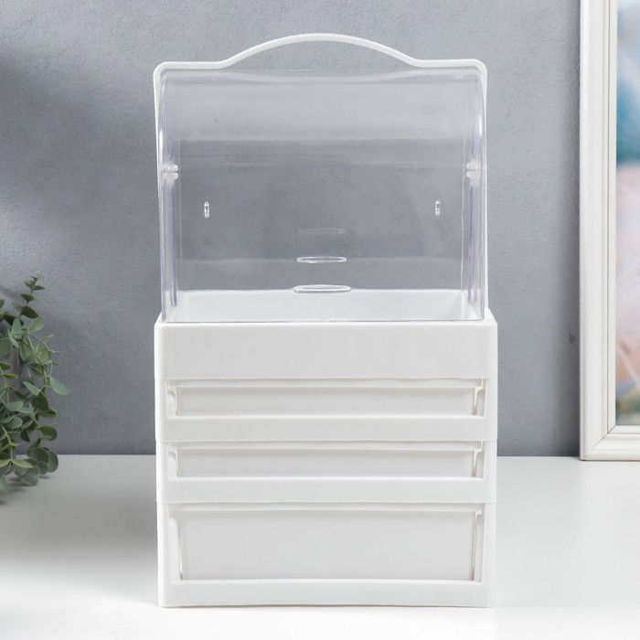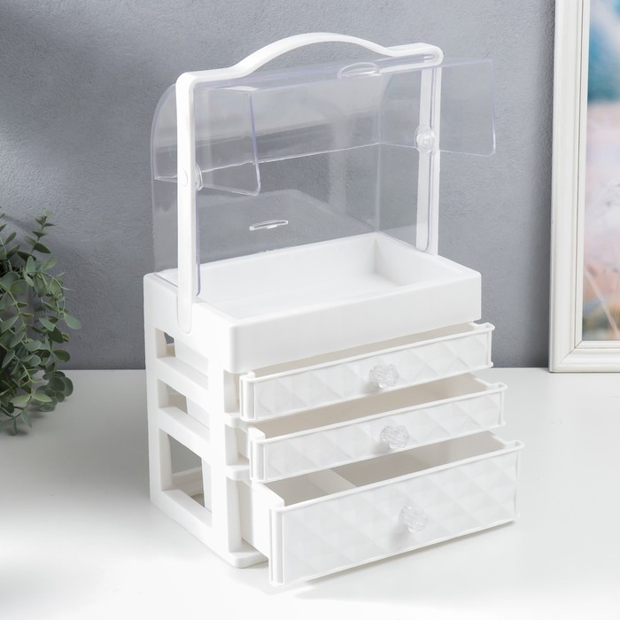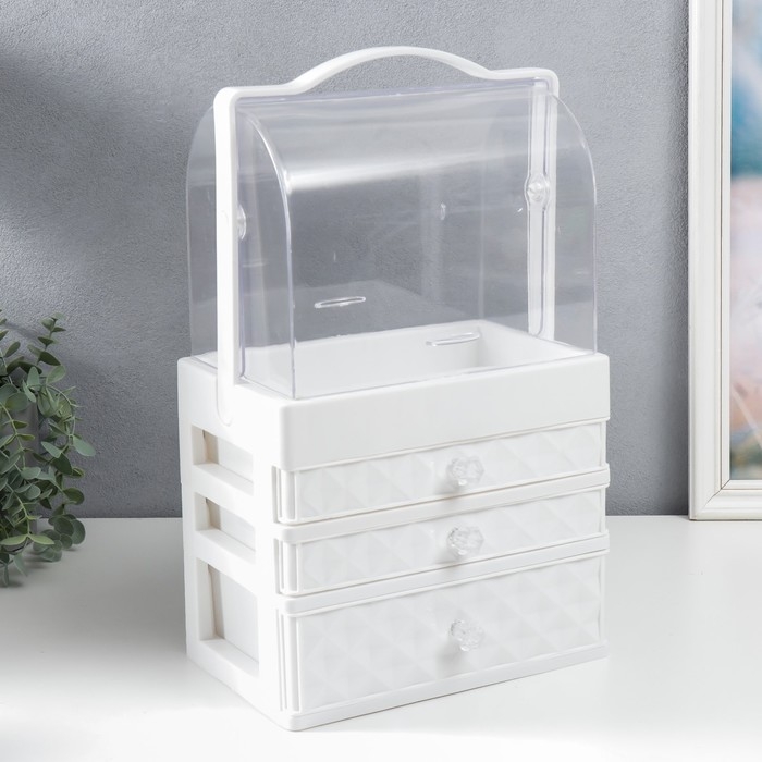 Шкатулка для косметики пластик "Ромбы. Белая. 3 ящика" 42х16,5х25 см