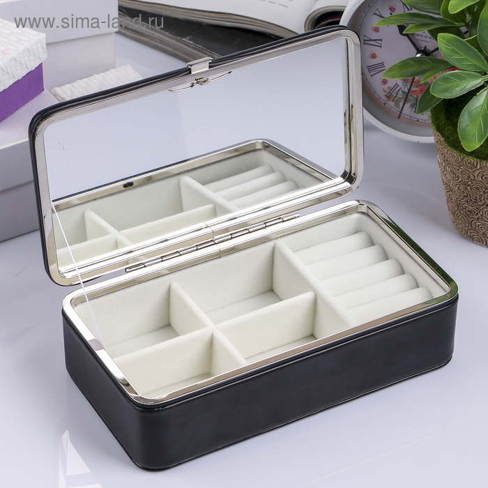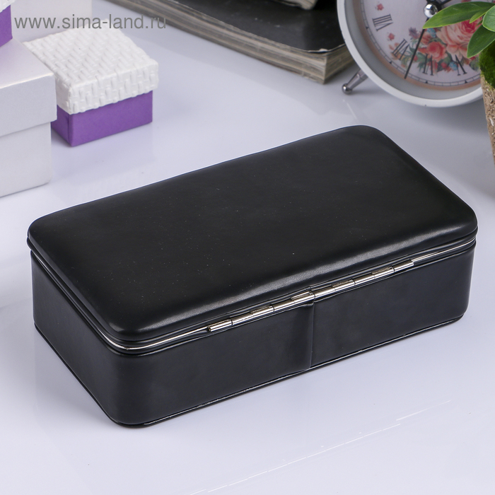 Шкатулка кожзам для украшений "Мини" чёрная 5,6х18,2х10,2 см