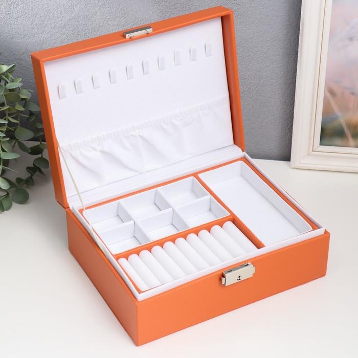 Шкатулка кожзам для украшений "Оранжевая матовая" 9х23х17 см