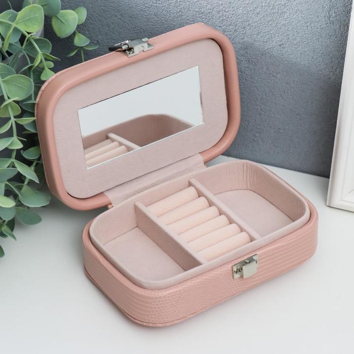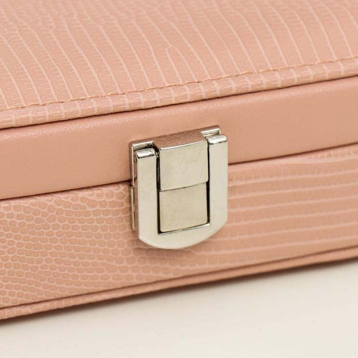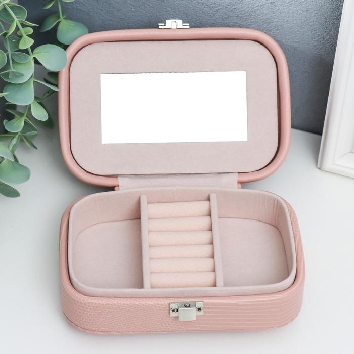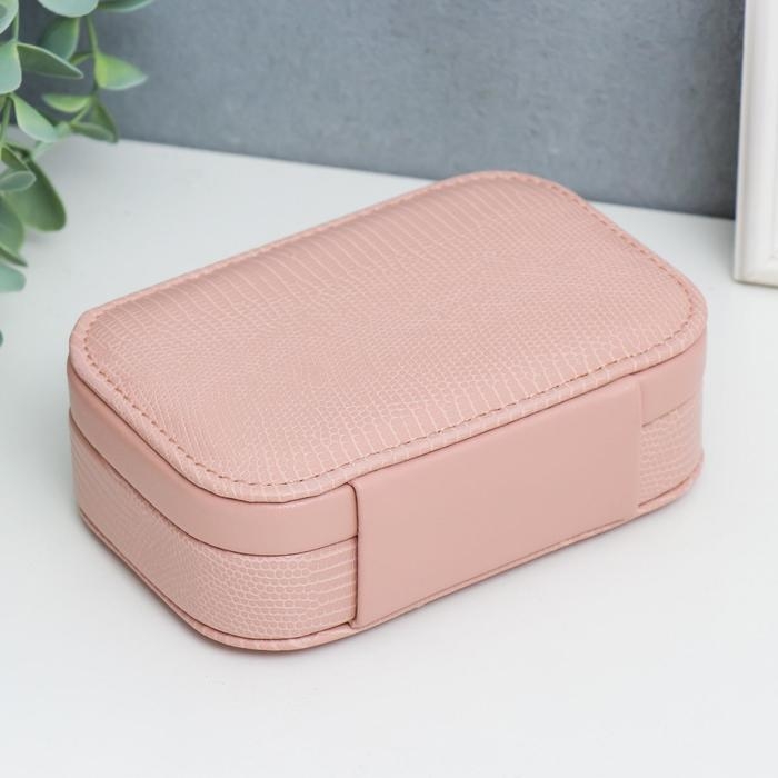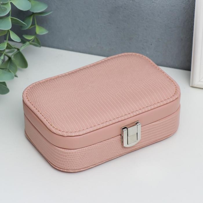 Шкатулка кожзам для украшений "Рептилия розовая" миниатюра комбинированная 4,5х10х15 см
