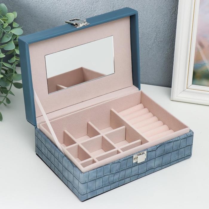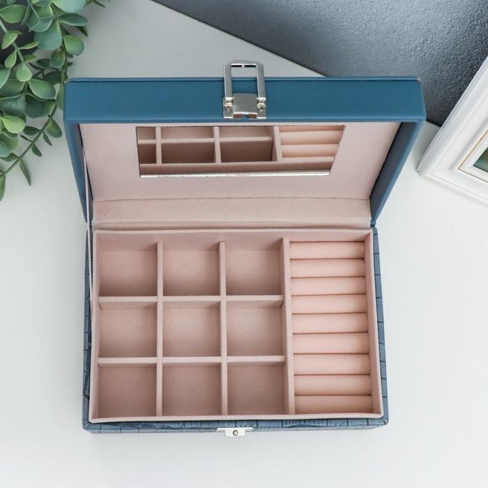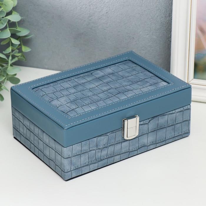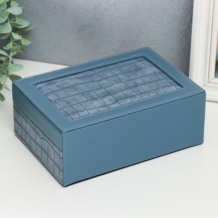 Шкатулка кожзам для украшений "Синий питон" комбинированная 7,5х14х20 см