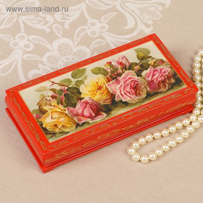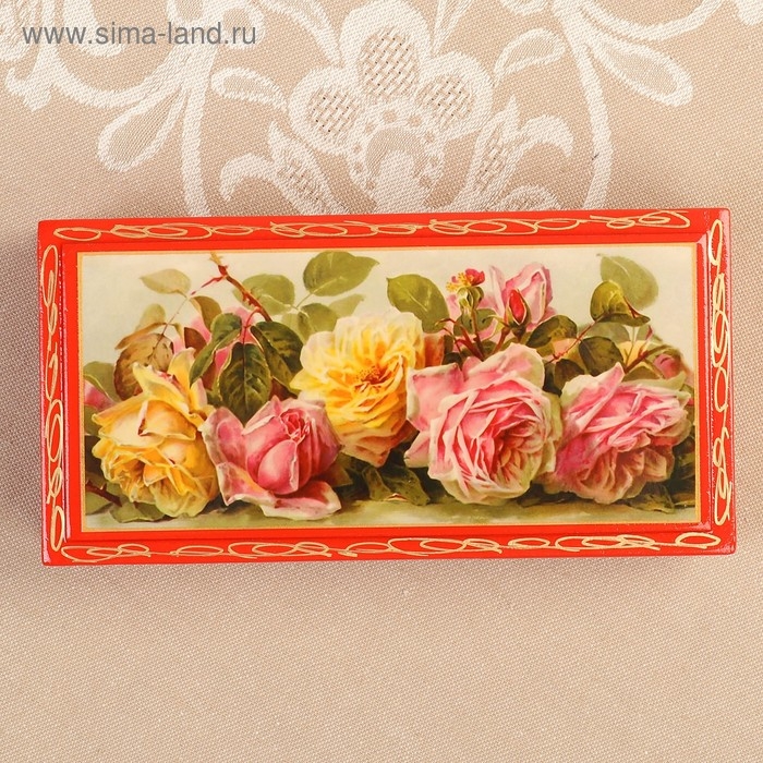Шкатулка - купюрница «Розы», красная, 8,5×17 см, лаковая миниатюра